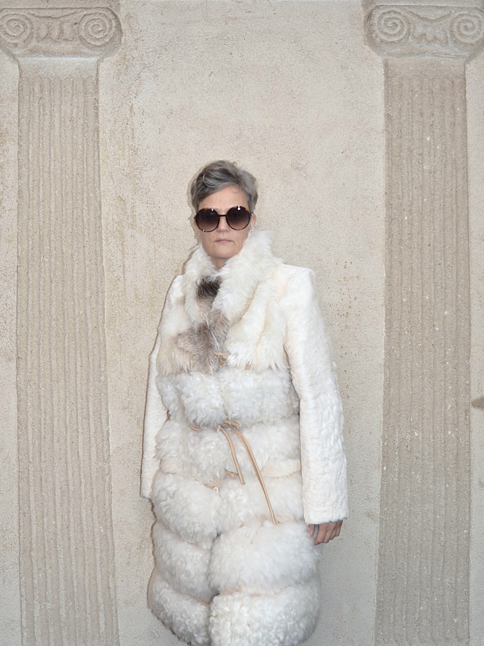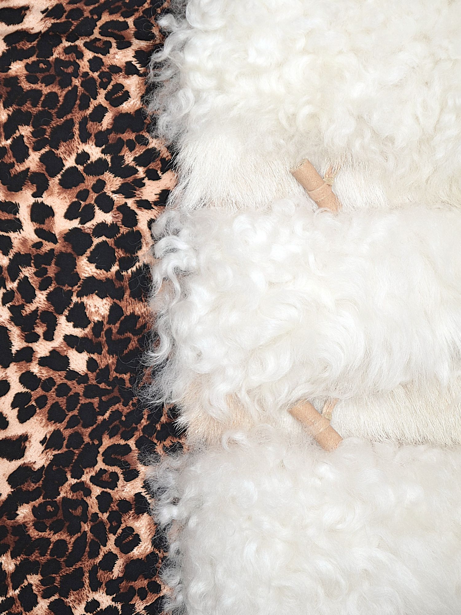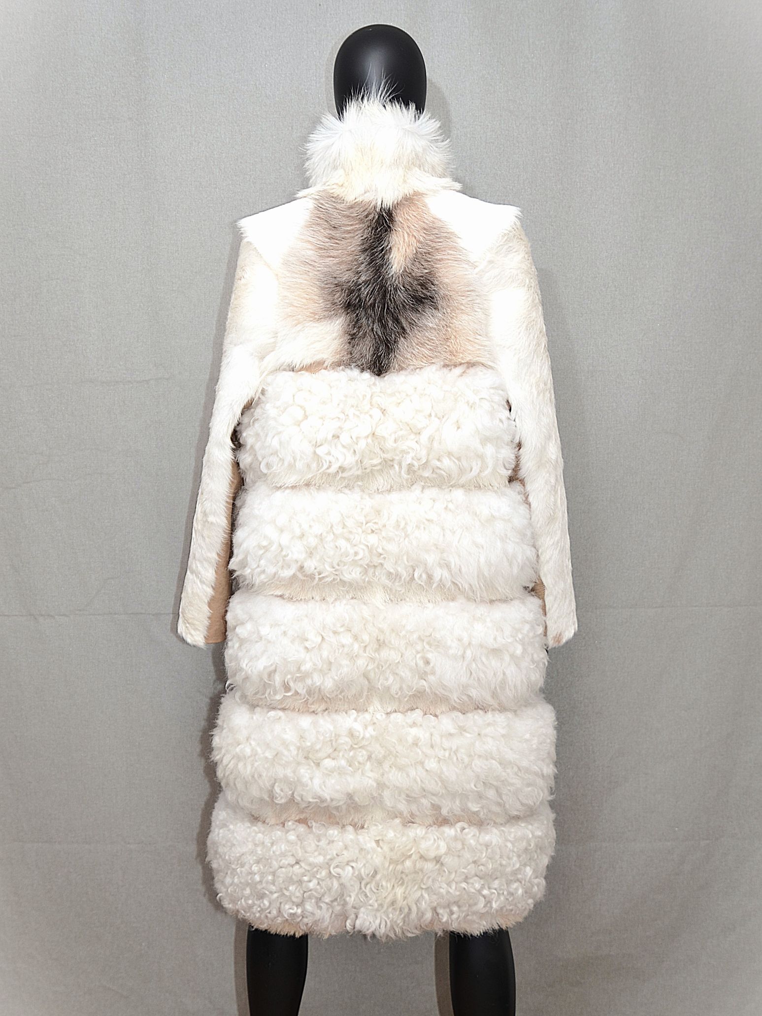 Lamba-, veise- ja kitsenahast kasukas. Kasukal on vooder, taskud ja nahast nööbid.