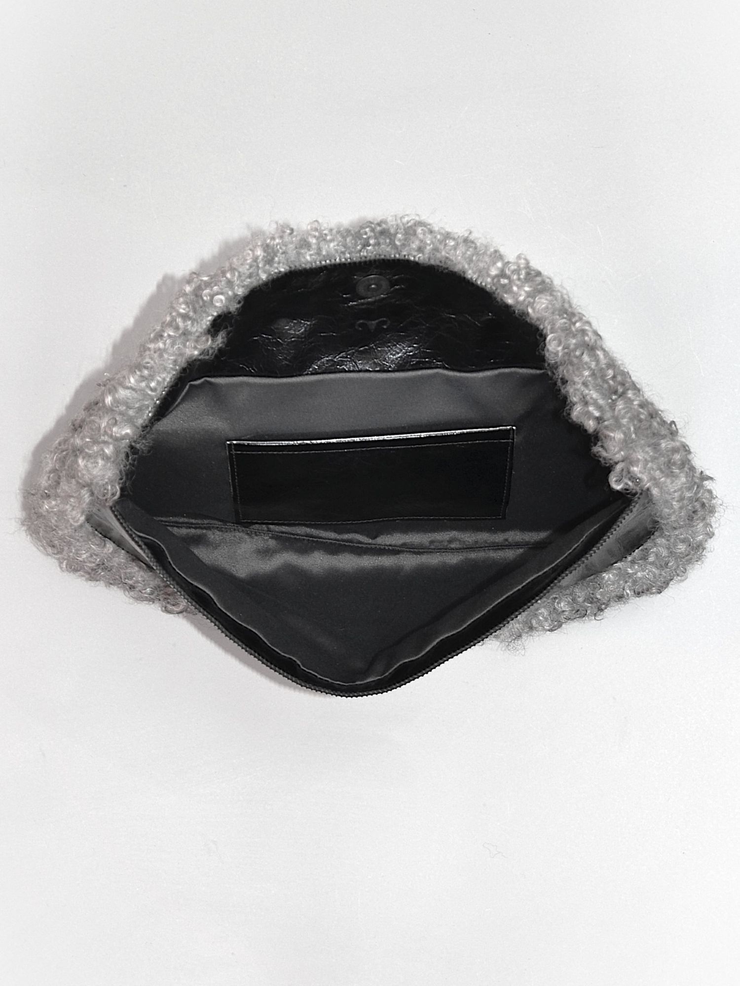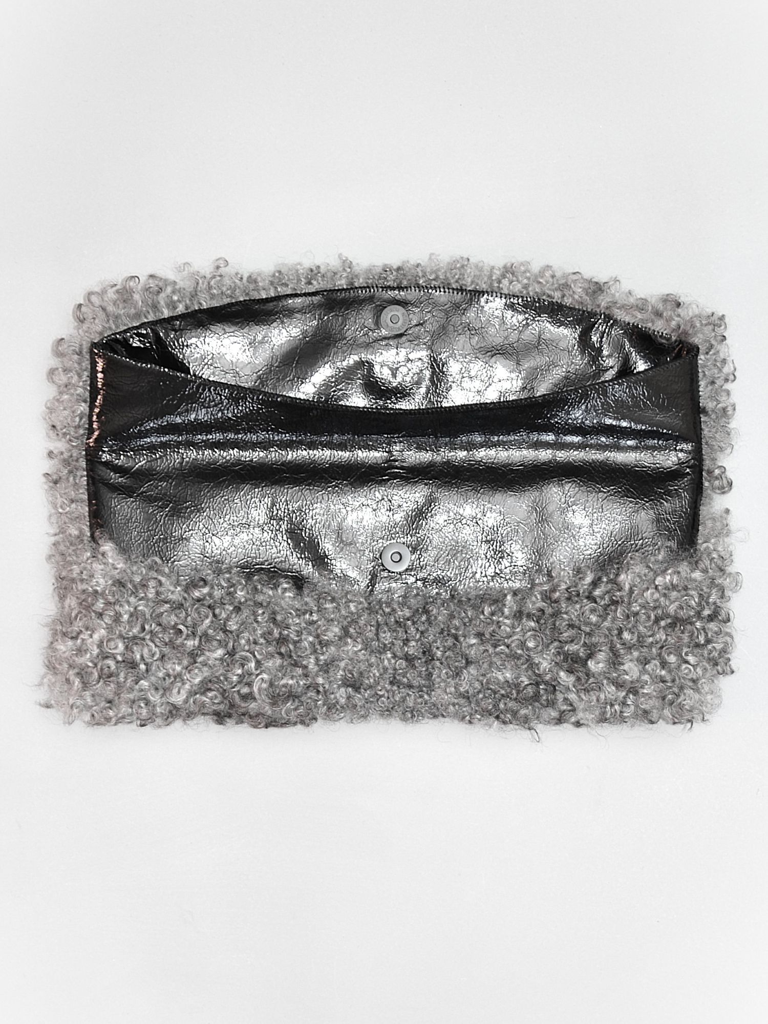 Gotlandi lamba nahast ja mustast lakknahast voodriga kott. Kinnituseks magnettrukk.