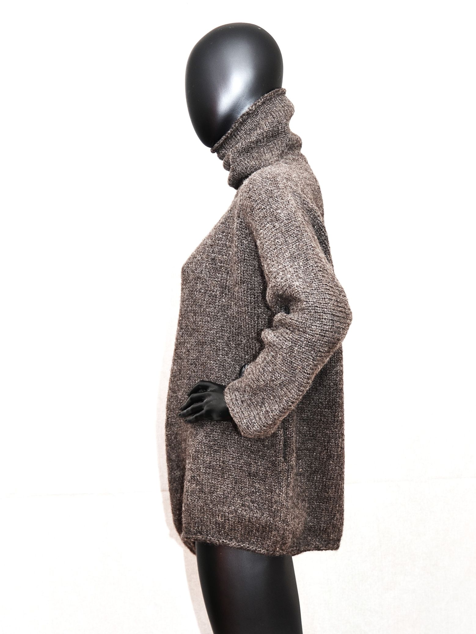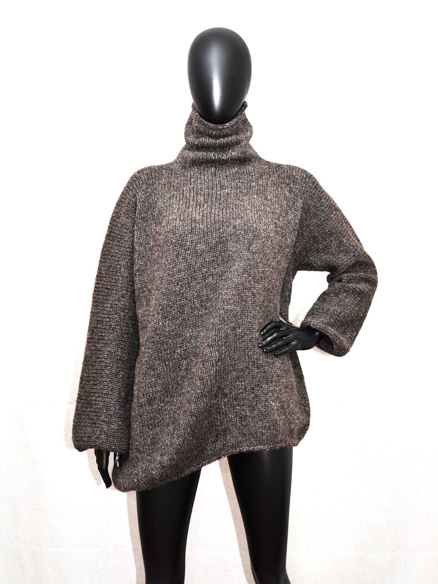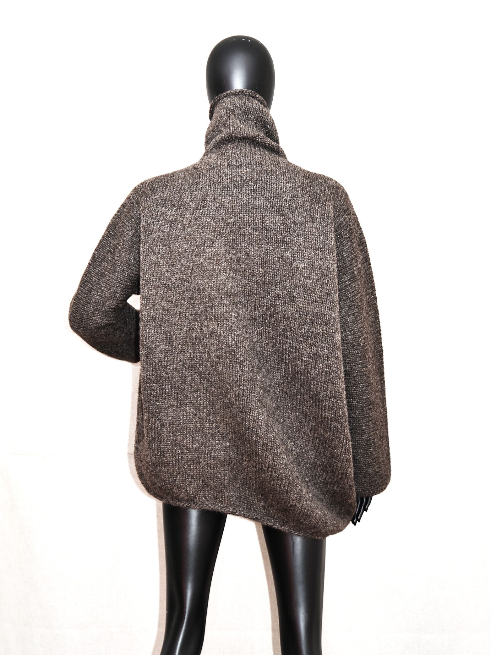 Hallikaspruun masinaga kootud, taskutega, väga paks kampsun.