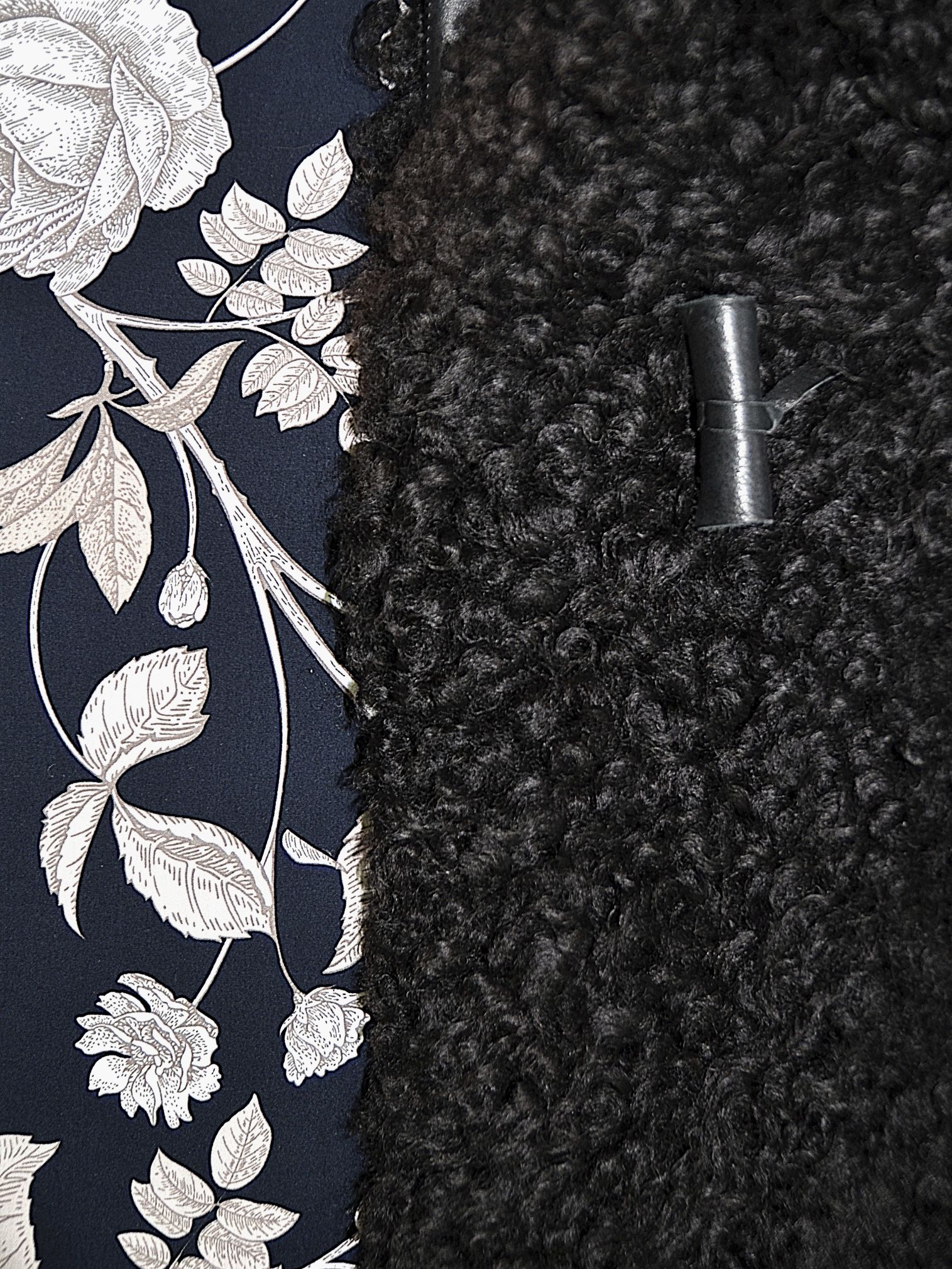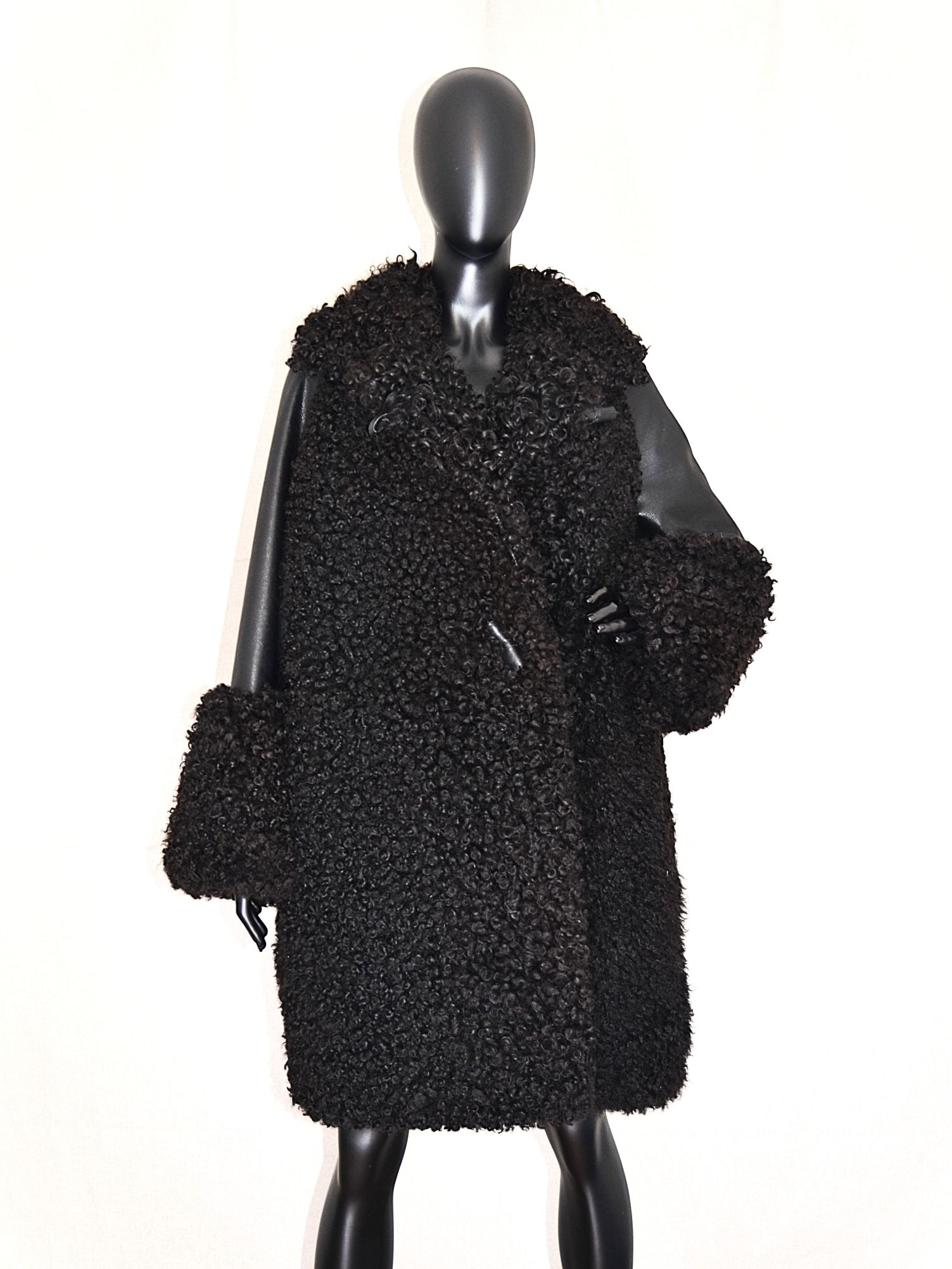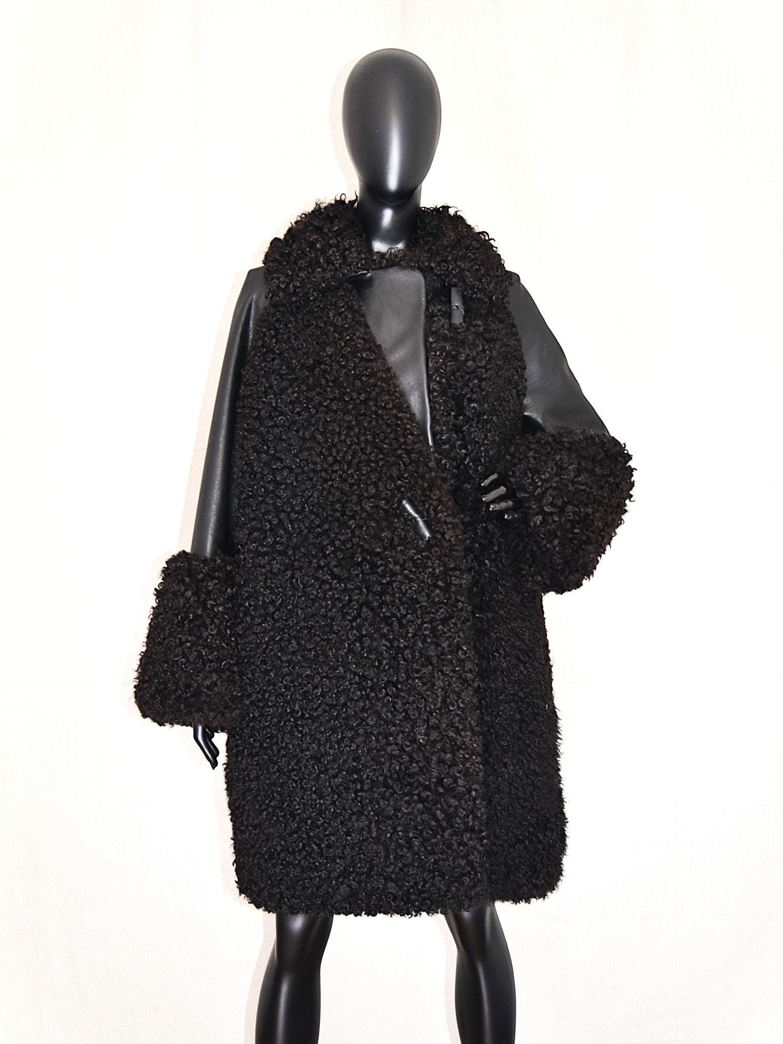 Lambanahast must voodriga kasukas. Kasukal on mustast nahast soojustatud voodriga varrukad, taskud ja kinnituseks nahast nööbid.