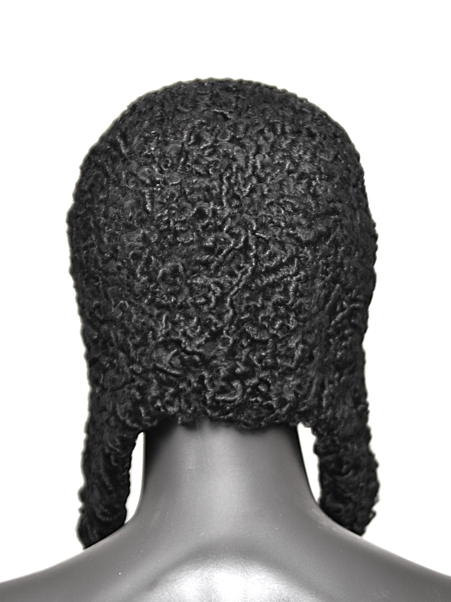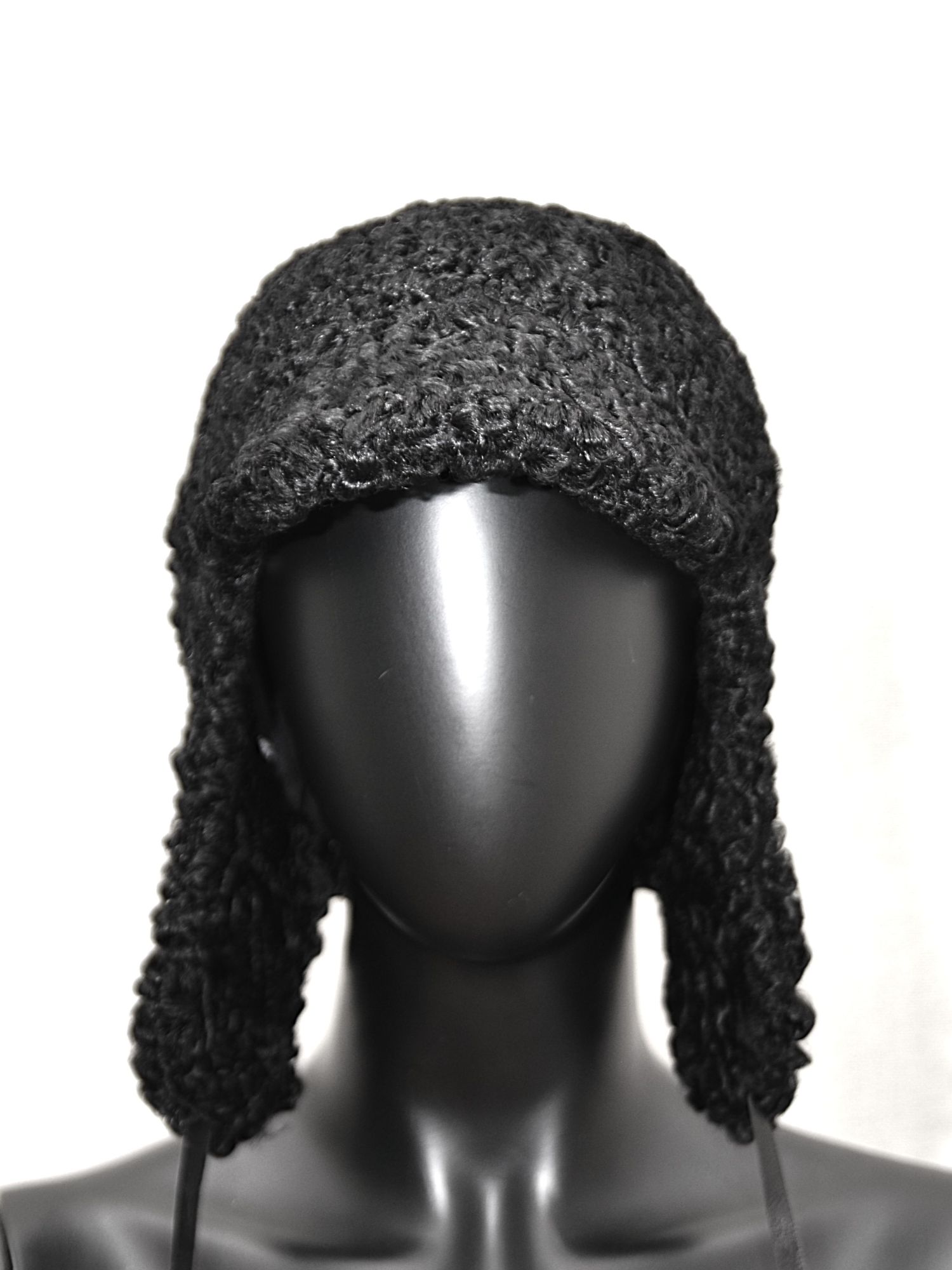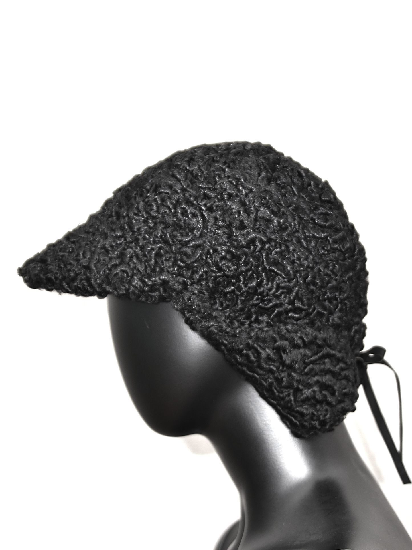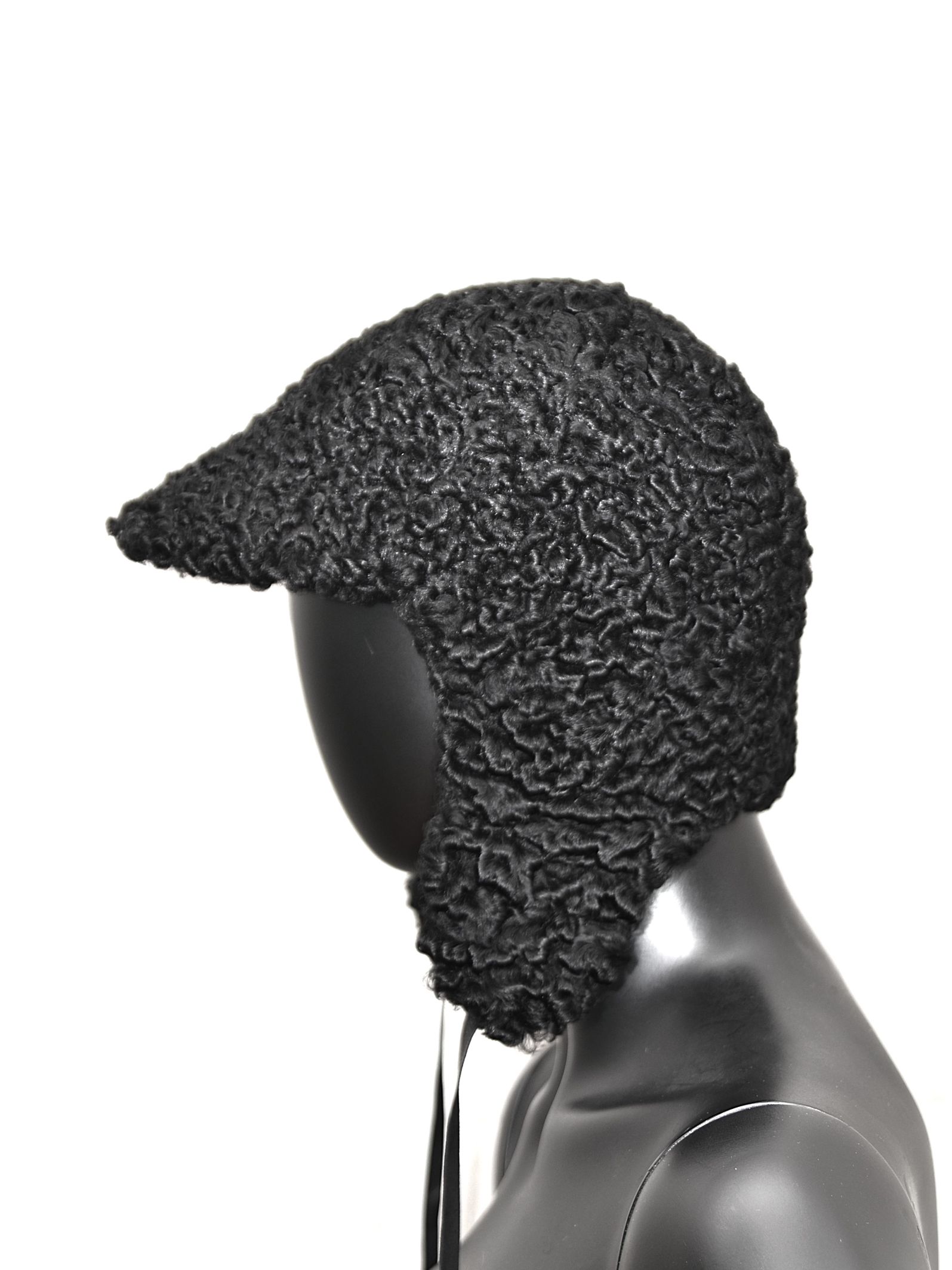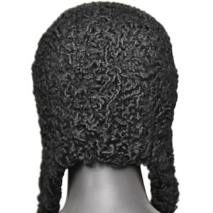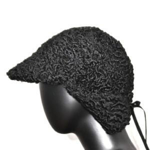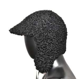 Taaskasutatud mustast karakull lamba nahast voodriga nokamüts.