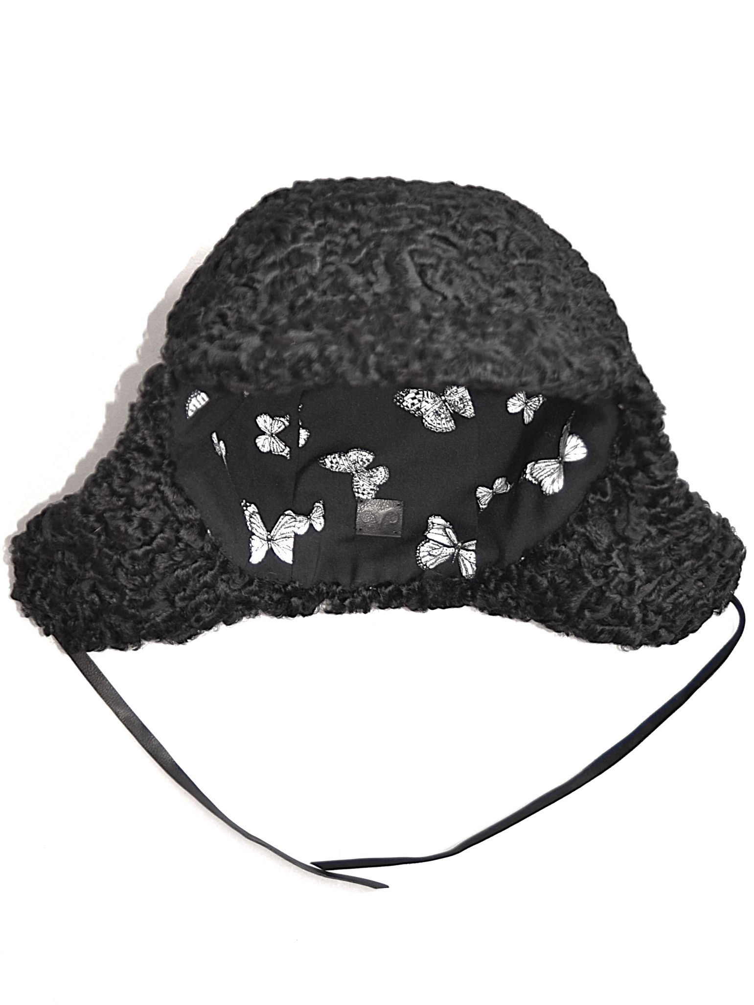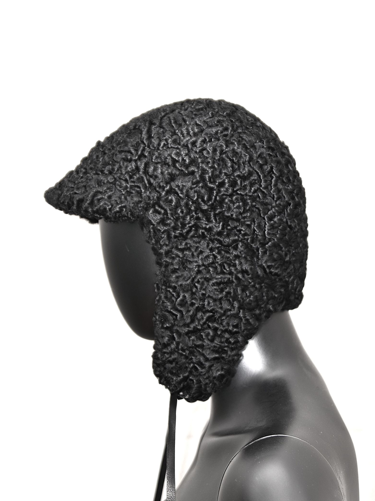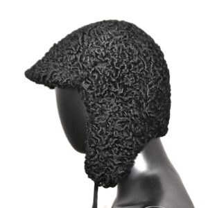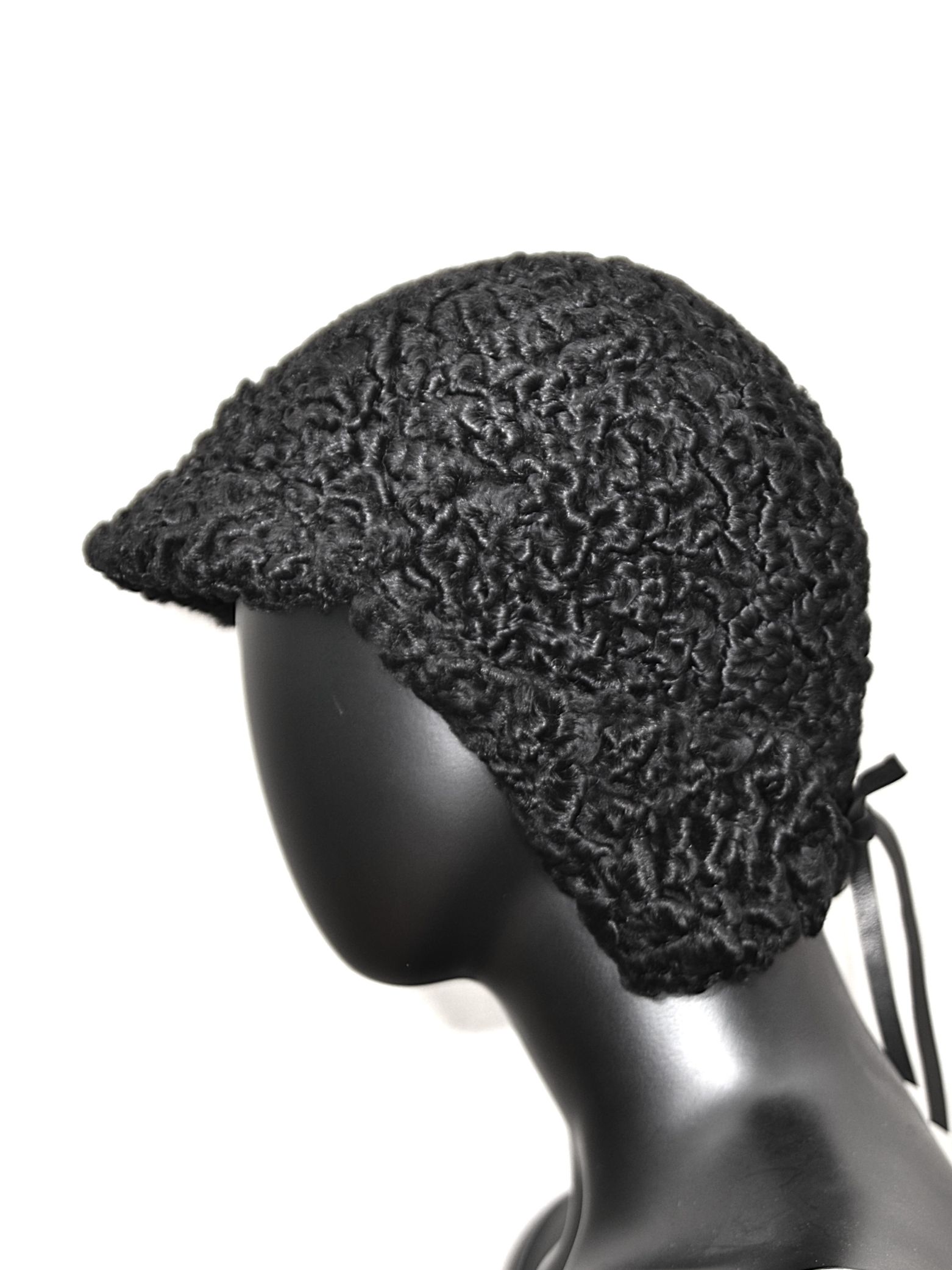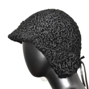 Taaskasutatud mustast karakull lamba nahast voodriga nokamüts.