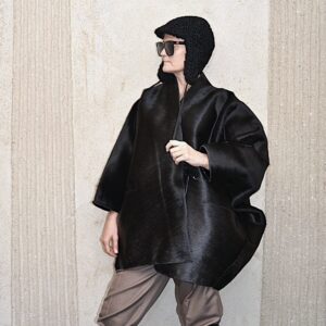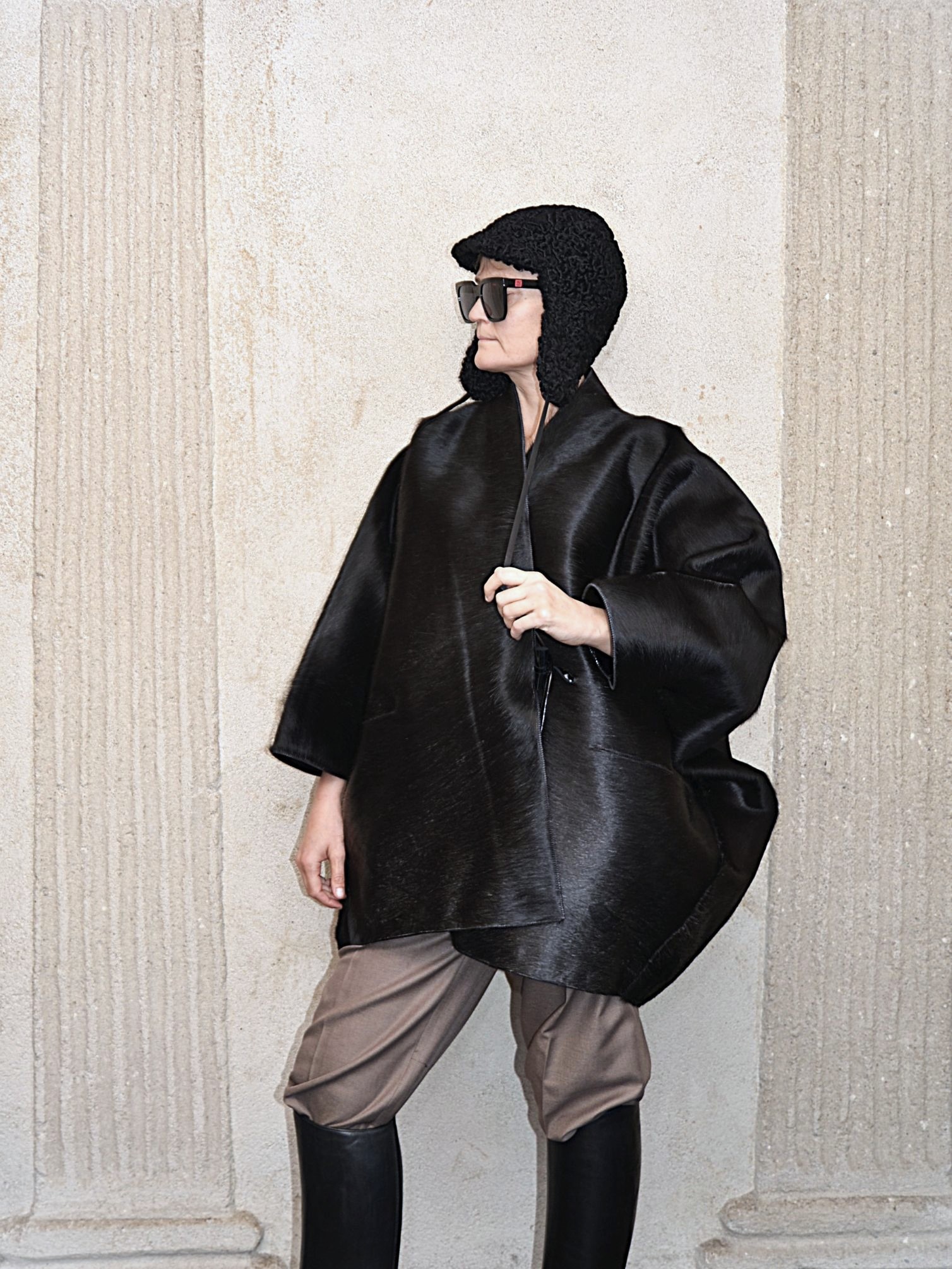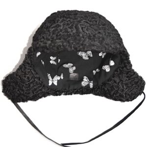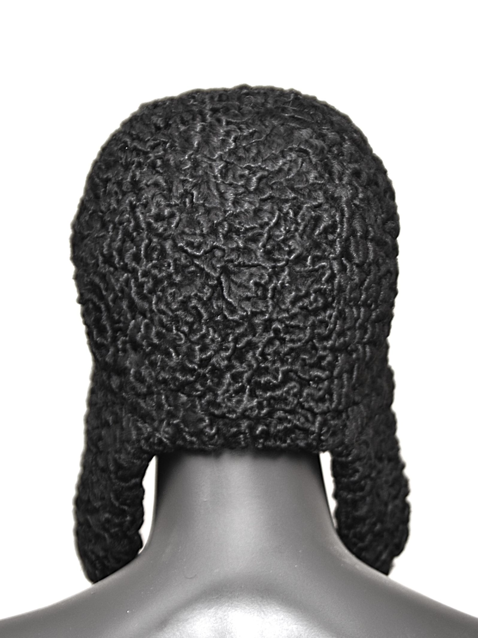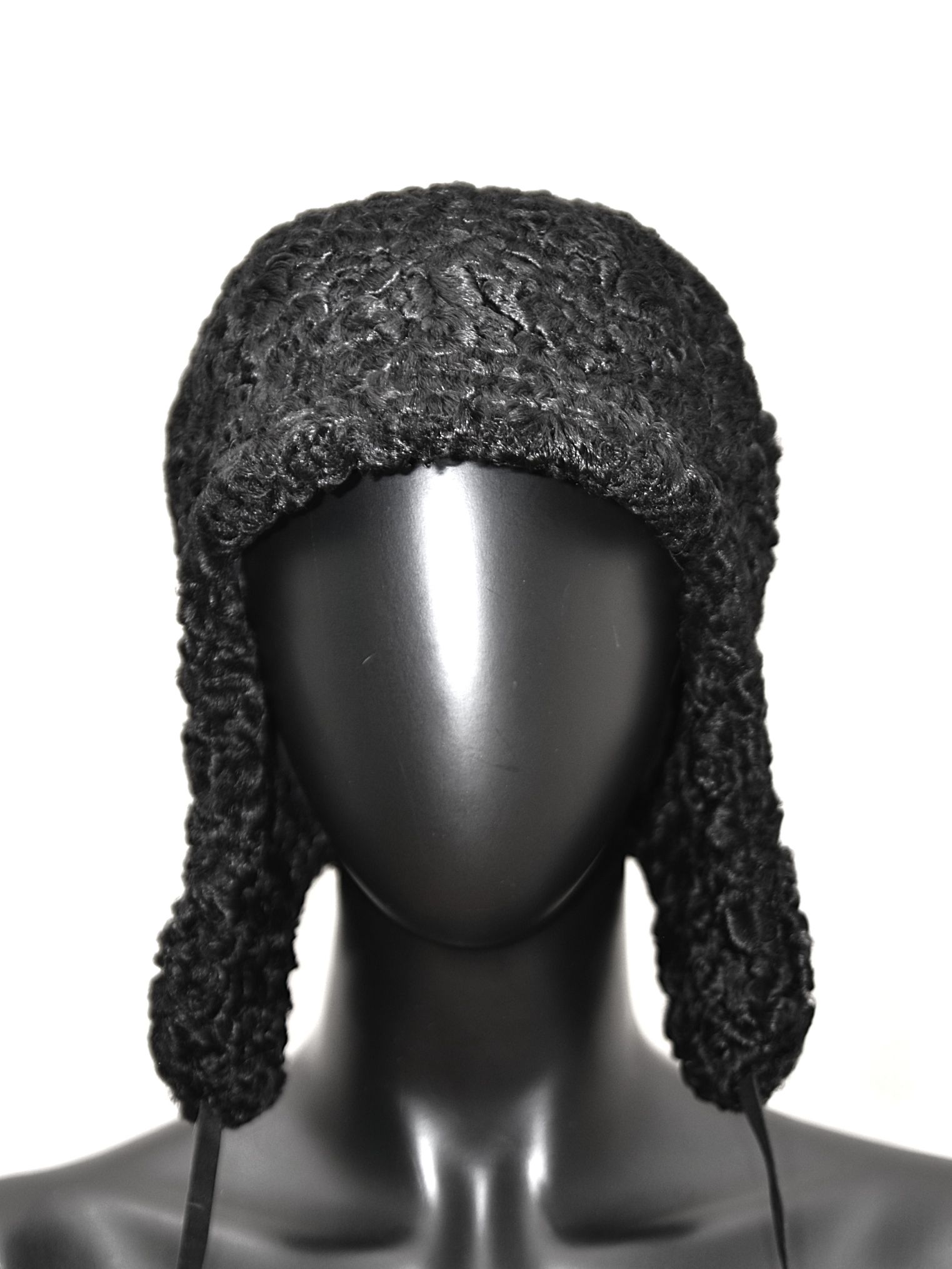 Taaskasutatud mustast karakull lamba nahast voodriga nokamüts.
