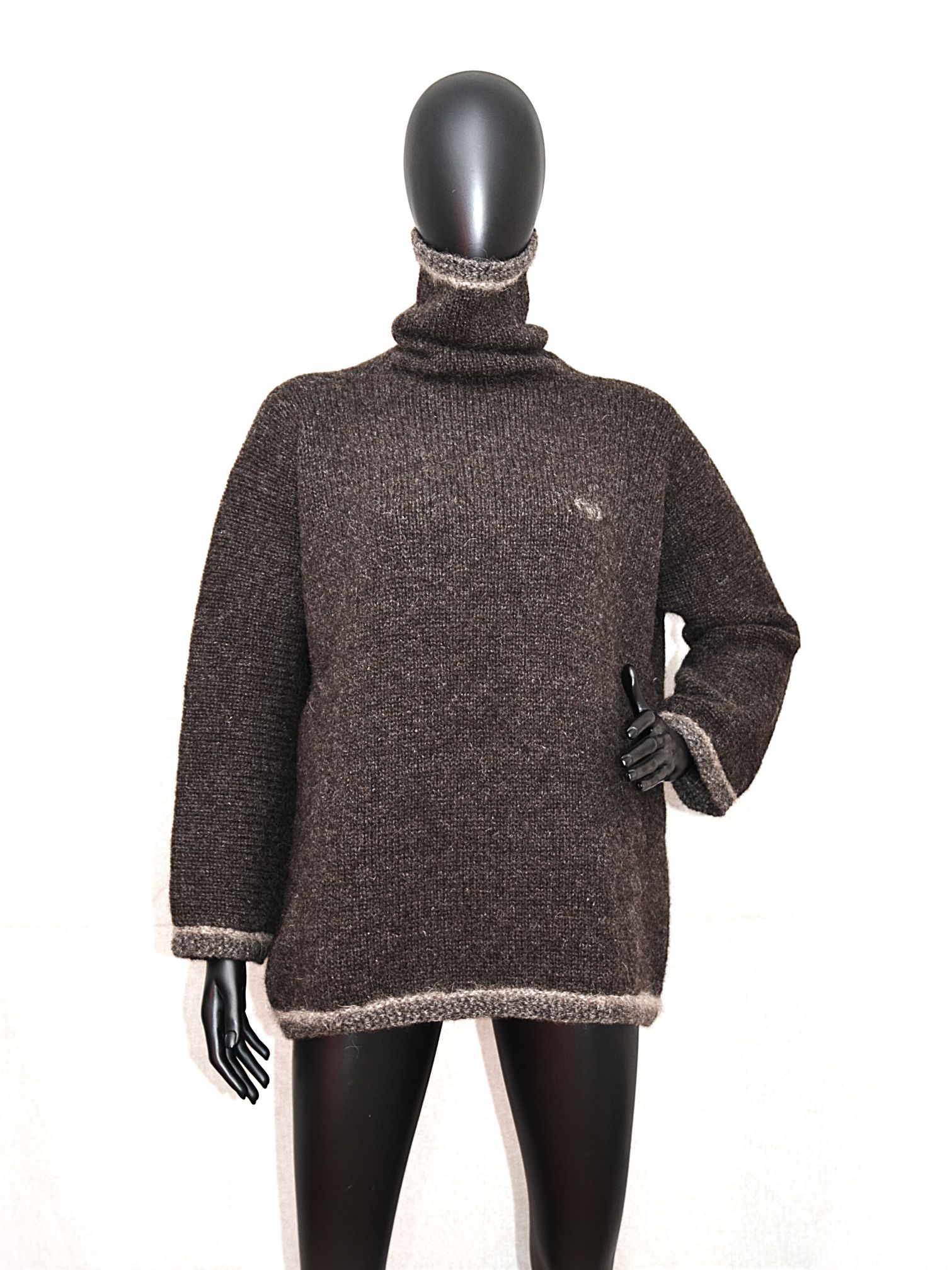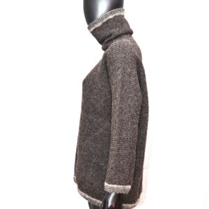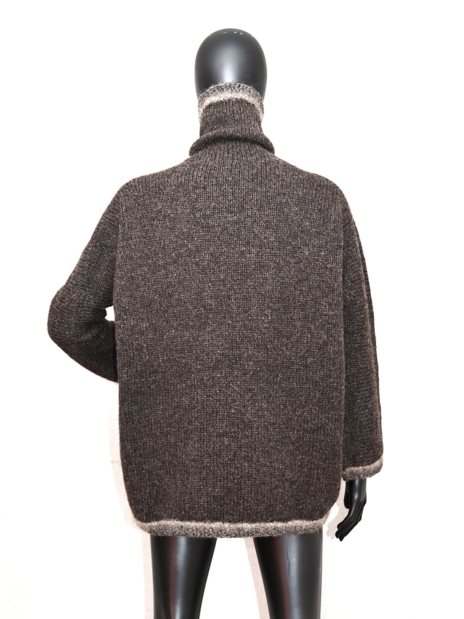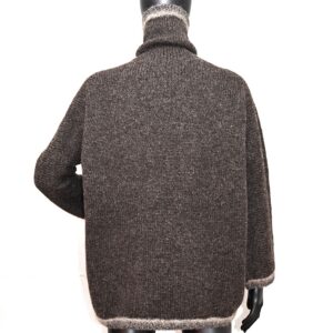 Triibuliste servadega tumepruun masinaga kootud, taskutega, väga paks kampsun.
